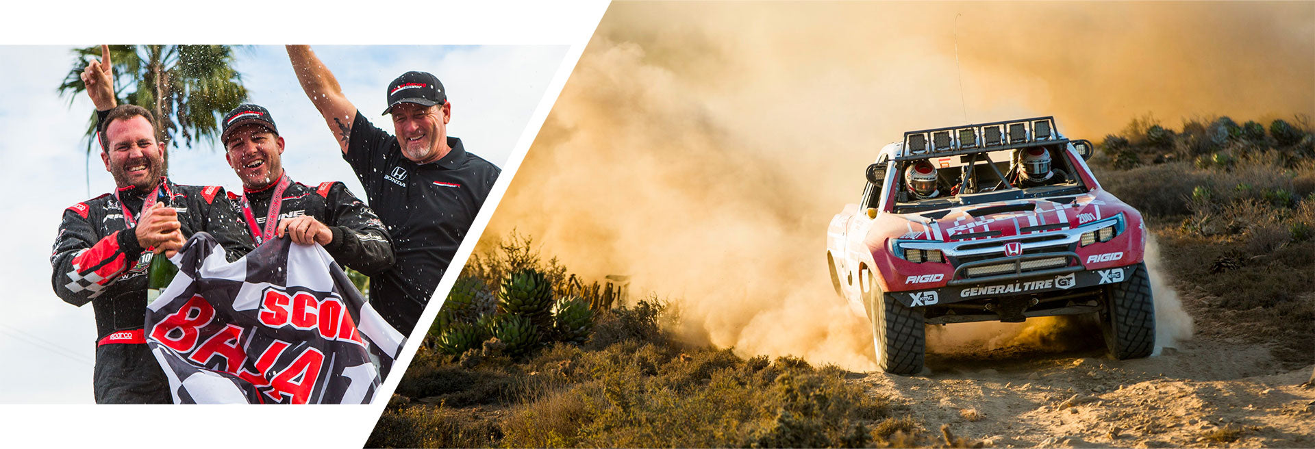 Proctor Racing Group is an off road desert racing team that competes in the USA and Mexico. The group is heading into their 6th season as a Factory Honda Racing Team since their debut at SEMA 2015 to launch the all new second generation Ridgeline. The off road Ridgeline has tackled the biggest and most challenging endurance off road races in the world and has compiled a total of 9 race wins in 5 seasons with a total of 21 starts.